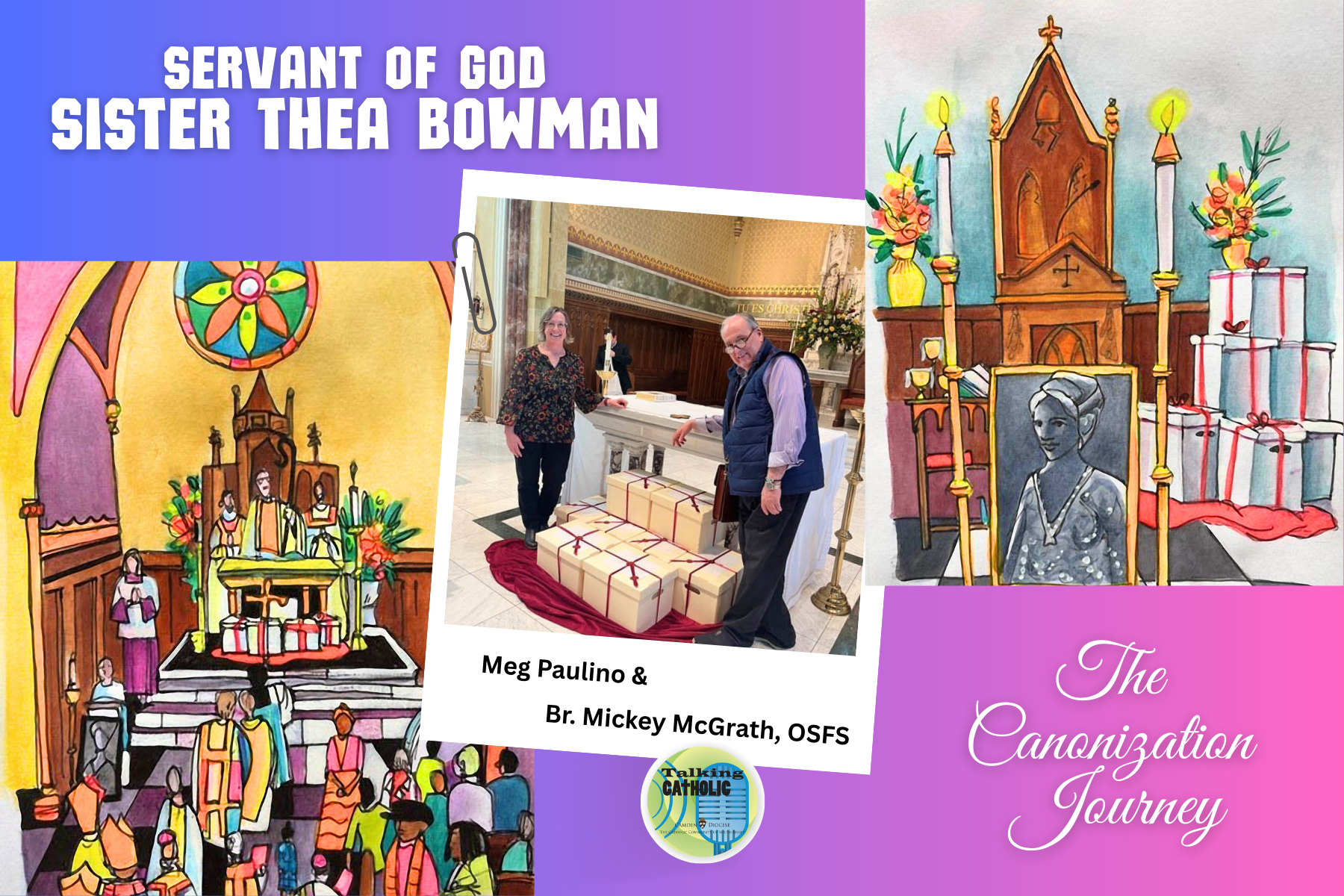 On this week’s episode of Talking Catholic, archivist Meg Paulino and Camden-based artist Brother Mickey McGrath, OSFS, stop by to discuss Servant of God Sister Thea Bowman. Both recently traveled to the Diocese of Jackson, Miss., for the closing of the diocesan phase of Sister Thea’s canonization cause.